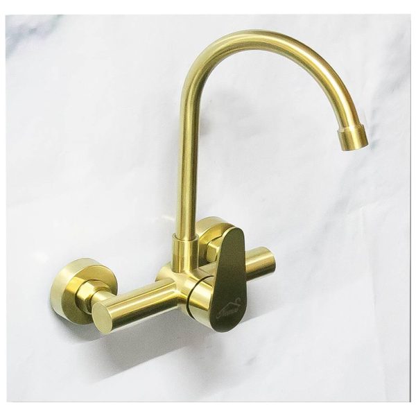 The Nemsi Brushed Gold Kitchen Mixer, wall type is a premium choice for enhancing your modern kitchen.