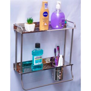 N022 ( Double Rectangle Shelf + Toothbrush Holder – 40cm )
